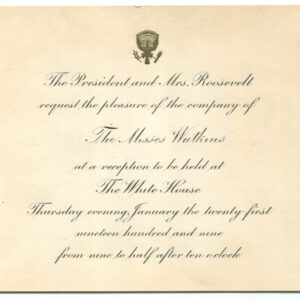 1909 President Theodore Roosevelt & First Lady Invitation to the White House