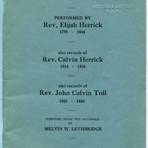 Montgomery County, N. Y. Marriage Records: Performed by Rev. Elijah Herrick 1795-1844, Also Records of Rev. Calvin Herrick 1834-1876, Also Records of Rev. John Calvin Toll 1803-1844