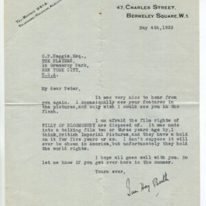 1933 Author Ian Hay Beith Writes to O. P. Heggie about the Film Rights to “Tilly of Bloomsbury”