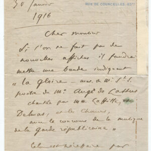 1916 French Composer Camille Saint-Saens Promotes the Performance of his Work “la Gloire”