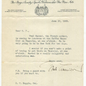 1925 Editor Frank Crowninshield Invites Actor O. P. Heggie to Lunch with Controversial Writer Paul Morand