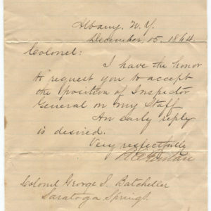 1864 NY Governor Reuben Fenton Asks Civil War Colonel Batcheller to be Inspector General (includes photo & business card)