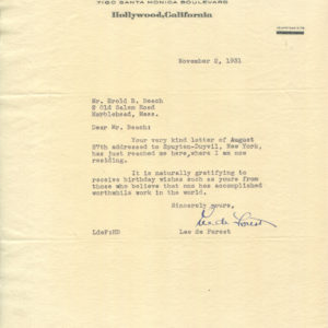 1931 American Inventor Lee de Forest Typed Letter Signed