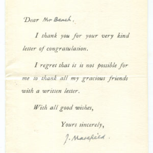British Poet Laureate John Masefield “Typed” Letter Signed