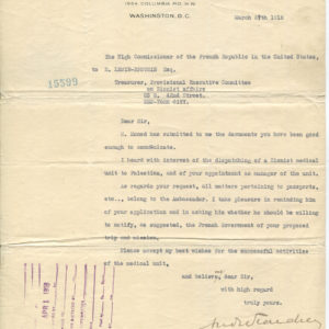 1918 Future Prime Minister of France Andre Tardieu Writes About Passports for Zionist Medical Unit