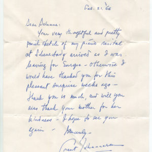1966 American Pianist Grant Johannesen Autograph Letter Signed