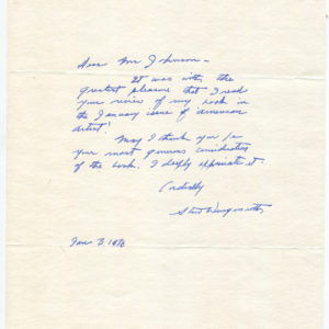 1976 American Artist Stow Wengenroth Writes to Fellow Artist/Author Fridolf Johnson