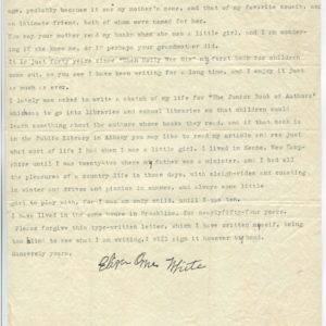 1935 Children’s Author Eliza Orne White Writes to a Child about her Life