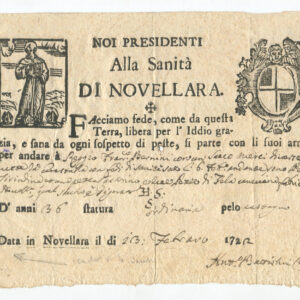 • 1722 Bill of Health for Novellara, Italy “Free of every suspicion of plague”