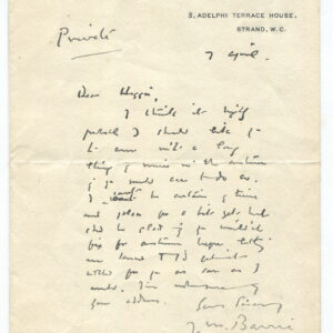 c.1913 Peter Pan Author J. M. Barrie Writes to Actor O. P. Heggie