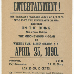 1890 Temperance Drama Broadside Barnes Corners, NY