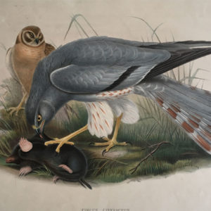 Hand-colored Lithograph “Circus Cineraceus” or Ash Colored Harrier from Gould’s The Birds of Great Britain