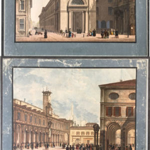 Four 19th c. Grand Tour Hand-Colored Engravings of Milan Italy