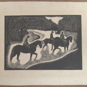 1936 Barbara Latham Wood Engraving “Fording the Stream”