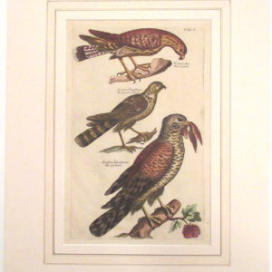 c. 1678 Copperplate Engraving from Ornithology of Francis Willughby, Kestrel and Hawk