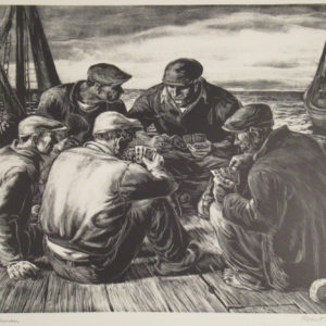 1953 Robert Von Neumann Pencil Signed Lithograph “Card Playing Fisherman”