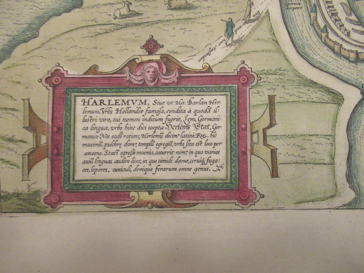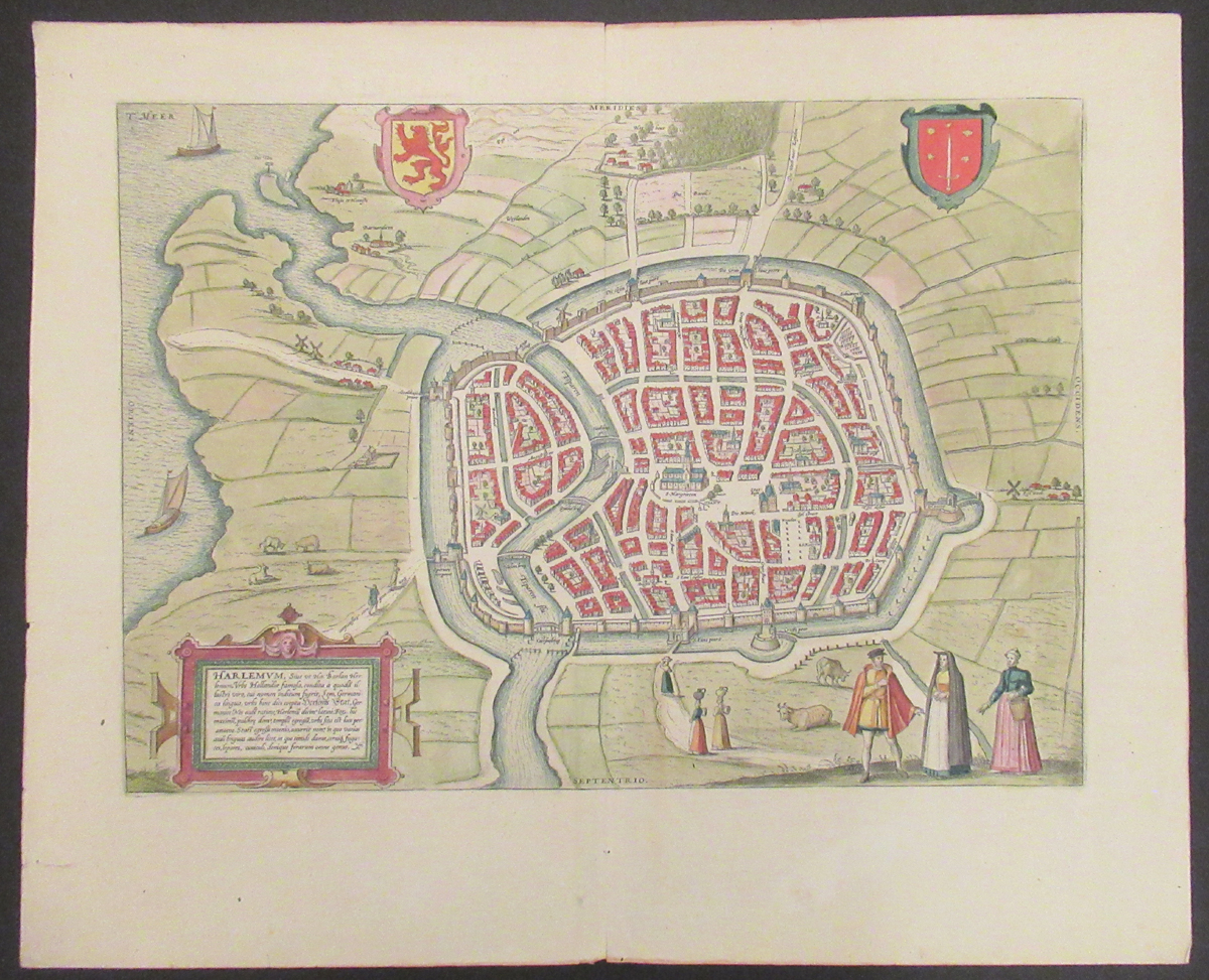 This map was part of a six volume atlas of towns, Civitates Orbis Terrarum, published by Georg Braun and Franz Hogenberg in 1575. Title reads in part: “Haarlemum, Sive ut Ha: Barlan Herlemum Urbs Hollandiae Famosa…”