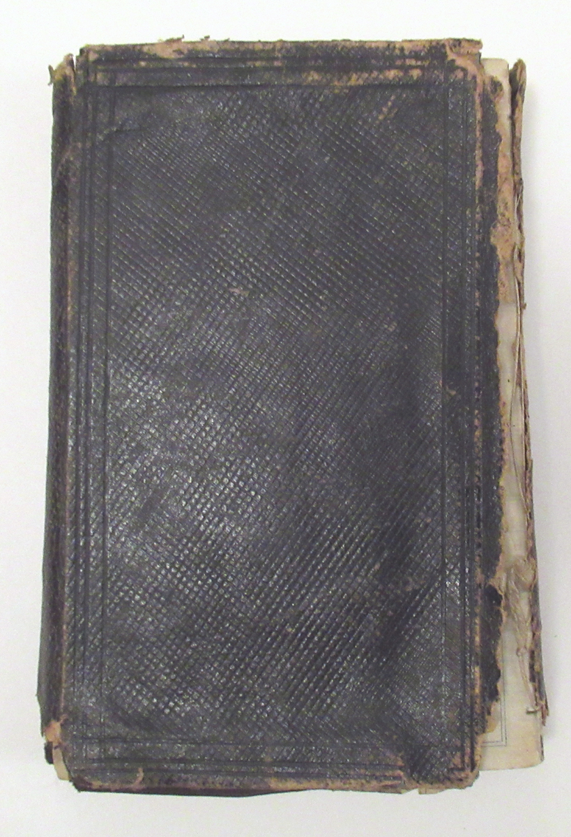 Condition: Rear “wrap” is almost entirely detached, front “wrap” chipped and worn, last page is detached but present. Interior pages in good condition with the manuscript entries clear and legible.