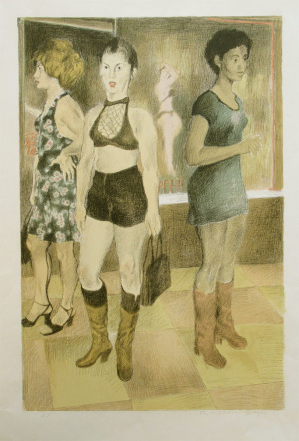 Description: We offer an original signed lithograph by Raphael Soyer. The composition is 23 ¾” x 16” on thick wove paper that measures 29 ¼” x 20 ¼”. The print is editioned and signed in graphite along the lower margin just under the image: “A. P.[artist proof] Raphael Soyer” with the Circle Gallery blindstamp at the lower corner margin. Item #PR00313.