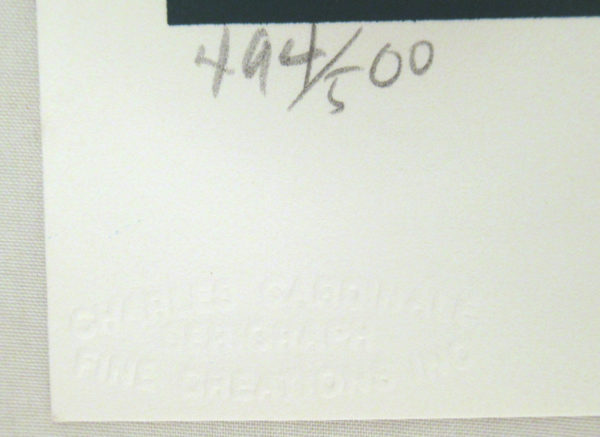 There is a blindstamp lower left which reads: “Charles Cardinale Fine Creations Inc. Serigraph”.