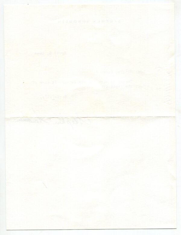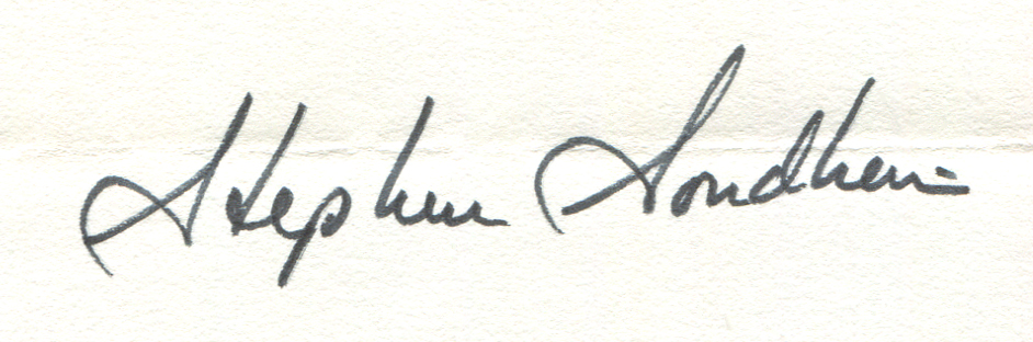 It is written on an 8″ x 6″ sheet of “Stephen Sondheim” imprinted stationery. Item #A01980