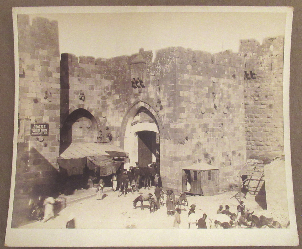 8 3/4″ x 11″ image on a plain mount that measures: 9 5/8″ x 11 1/2″. “Jaffa Gate Jerusalem” written in pencil on verso. Item #P00321