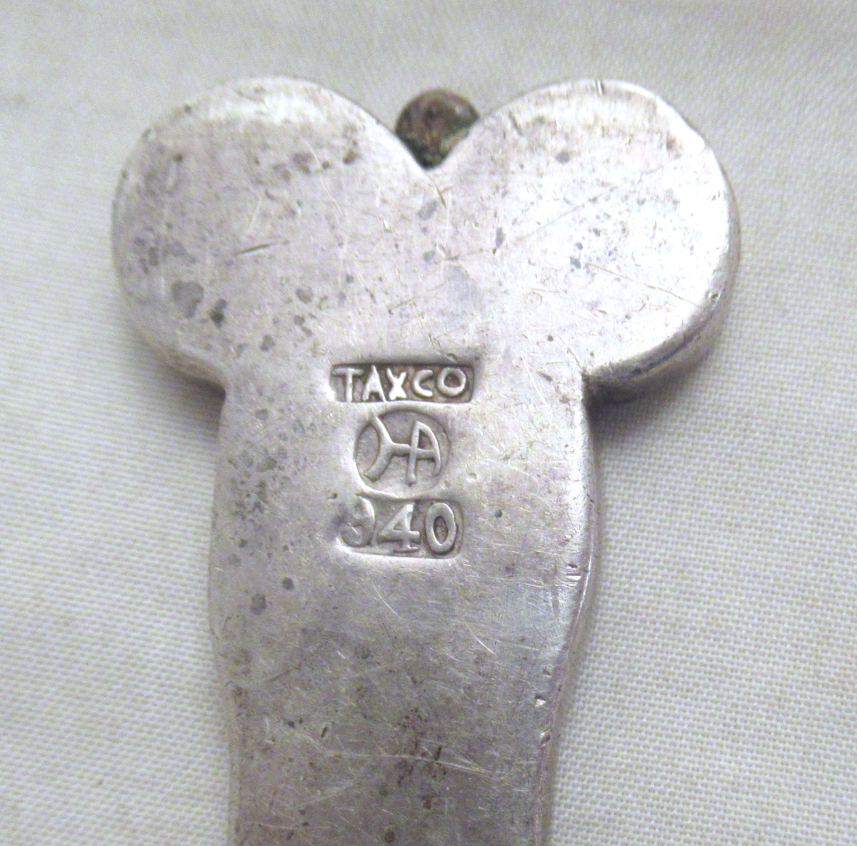 Verso of handle is stamped “Taxco 940” and has Hector Aguilar’s conjoined “HA” logo.