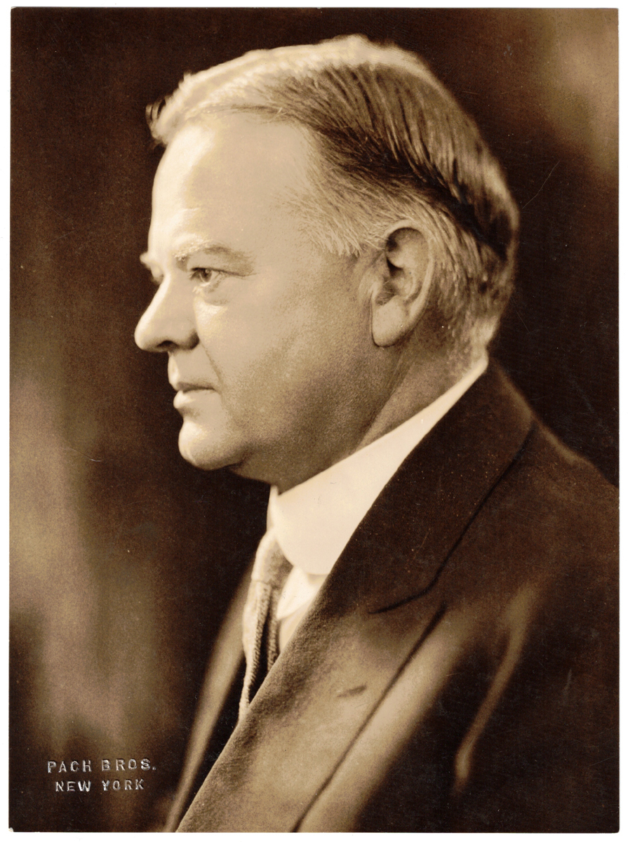 Description: This excellent Pach Bros. photograph of Herbert Hoover shows the serious-faced profile of the 31st President. The “Pach Bros. New York” blindstamp is at the bottom left corner.