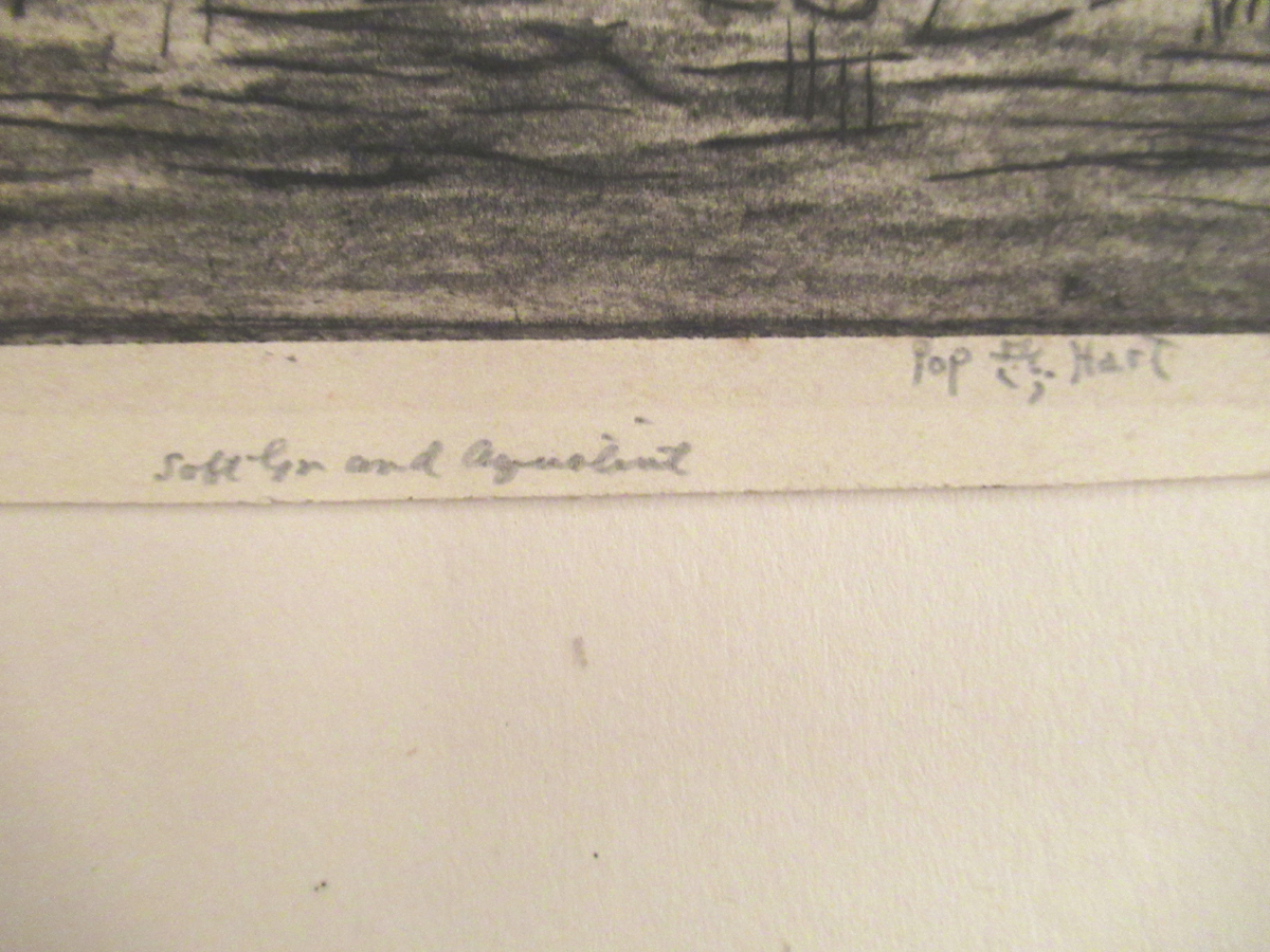 George Overbury (Pop) Hart (1868-1933), painter, watercolorist, and printmaker, studied at the Art Institute of Chicago and the Academie Julian in Paris. He had a close association with Edward Hopper, Arthur B. Davies and Walt Kuhn through the Fort Lee, New Jersey artist’s colony. He was a member of the American Watercolor Society, New York Watercolor Club, Brooklyn Society of Etchers, Salons of America, etc.